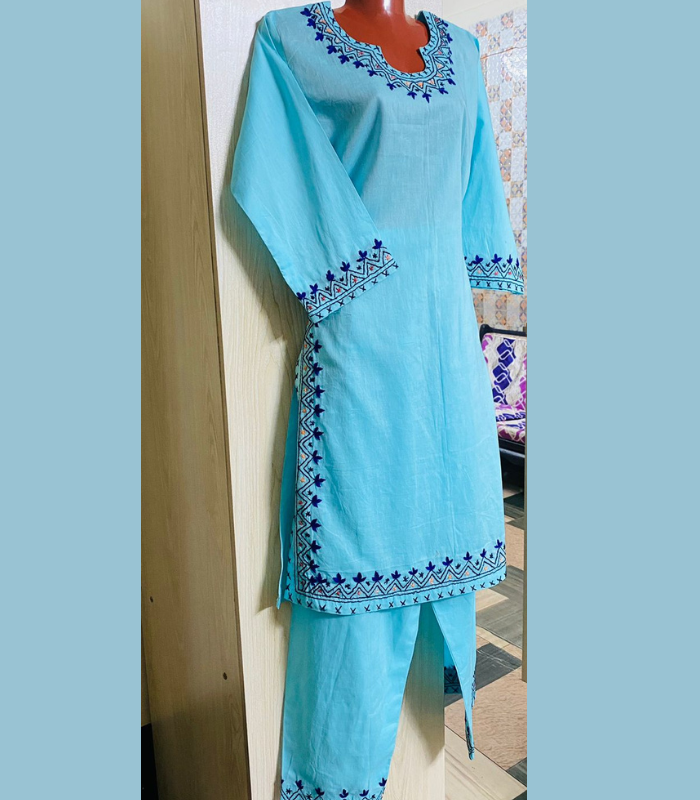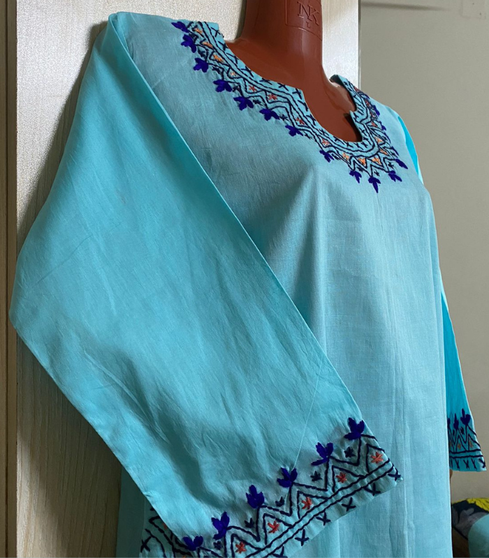 Chickankari Dress for Women – Blue: Elegant hand-embroidered detailing on a soft, comfortable fabric. Perfect for festive wear, casual outings, and everyday style.