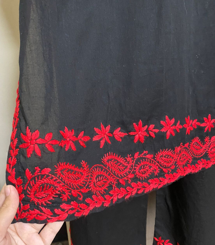 This stunning Chikankari Cotton Dress is crafted with intricate hand embroidery by skilled artisans, showcasing the timeless beauty of traditional